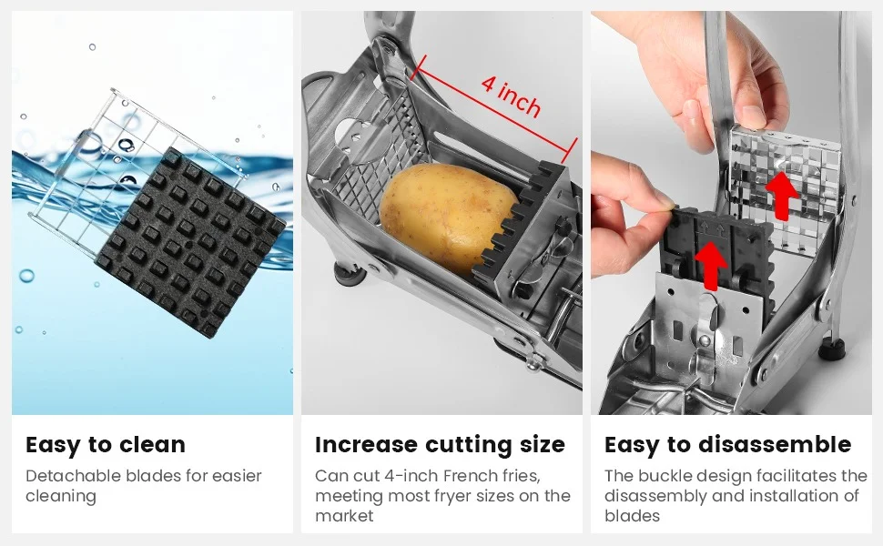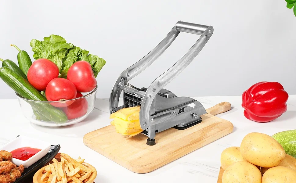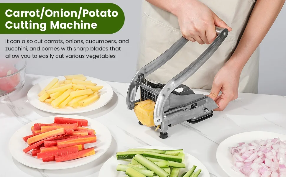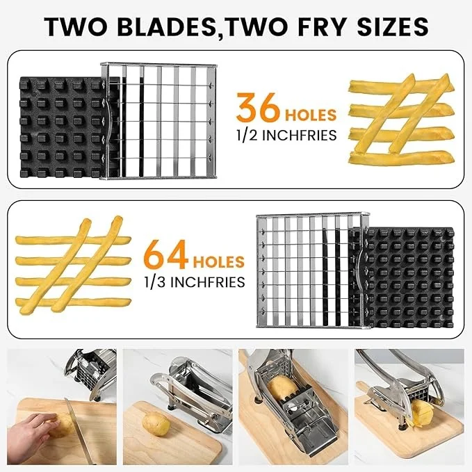 The extended handle provides superior leverage to glide through the firmest potatoes and sweet potatoes. A powerful non-slip suction base locks the cutter securely onto your countertop, preventing slips and shifts for a safe, stable, and efficient cutting experience.
